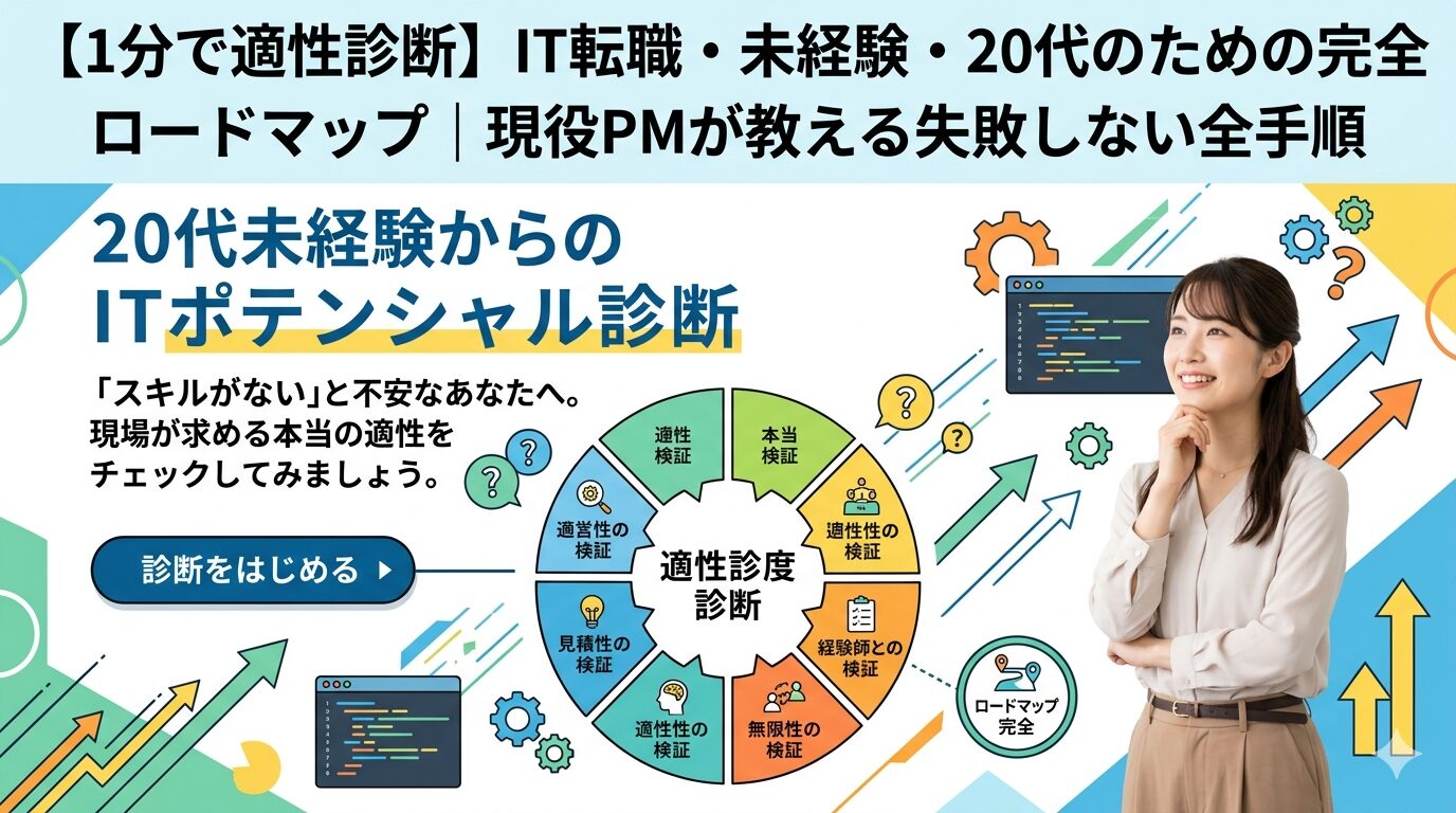 「IT転職はやめとけ」は本当か。プログラミング未経験からシステムPM・年収650万円を実現した現役エンジニアが、求人には書かれていない厳しい実態・適性・転職成功3ステップを本音で解説。20代・30代の異業種からの転職を検討中の方必読。